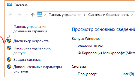 - В открывшемся окне найти «Диспетчер устройств» (выделен галочкой на скриншоте). Важно: у вас должны быть права администратора для этого действия.