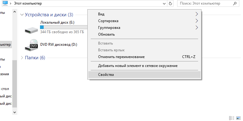 - Кликнуть правой кнопкой мыши по иконке «Мой компьютер», затем левой кнопкой выбрать пункт «Свойства».